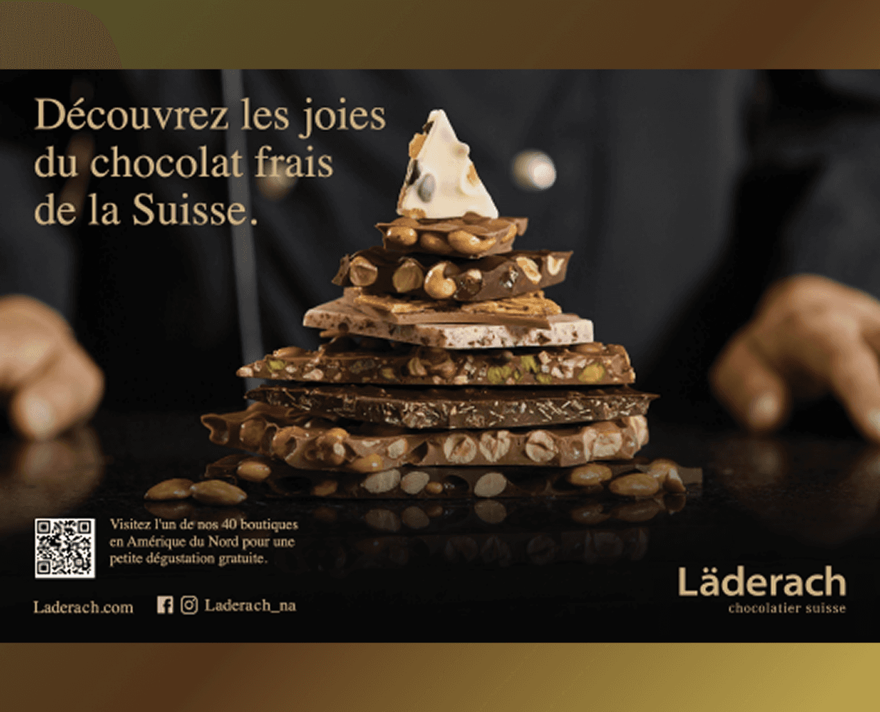 The creative challenge was to design a visual that spoke simultaneously to French-speaking consumers and North American luxury markets, while staying true to Läderach’s heritage.